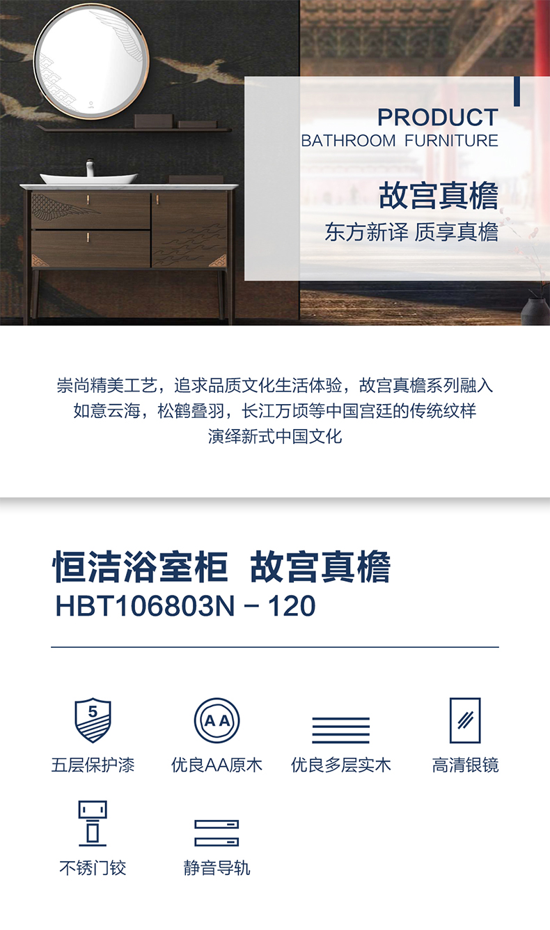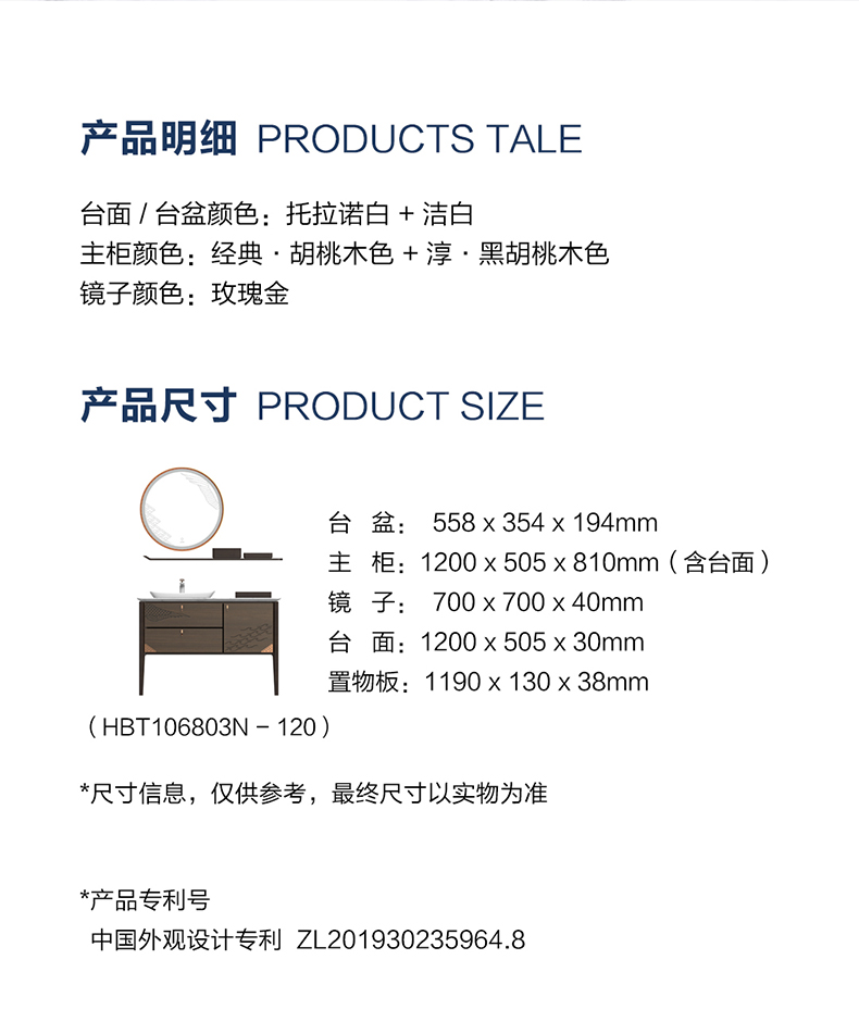 HBT106803N-120 (經典胡桃木色)實木浴室柜