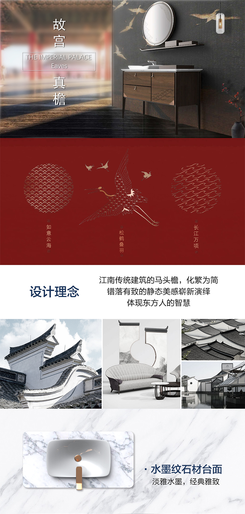 - 汲取仙鶴、祥云、水紋等傳統中式宮廷元素,締造新中式美學衛浴空間;